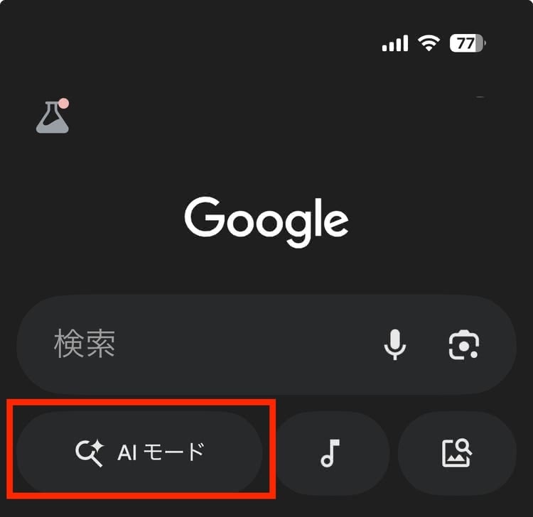 アプリを開いたら、ホーム画面にある AIモードのアイコンをタップするだけで利用可能です。