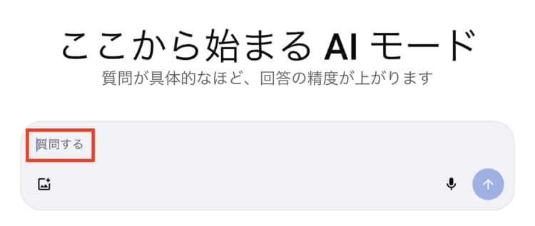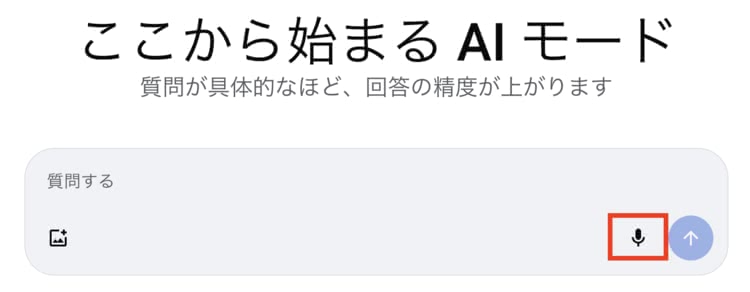 - www.google.com にアクセスし、検索バーに質問を入力したあとに表示される [AIモード] ボタンをタップ