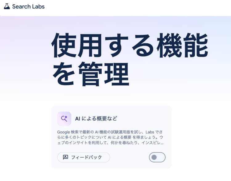もう一つの方法としてSearch Labsの管理メニューから、AIによる概要をオフにする方法があります。